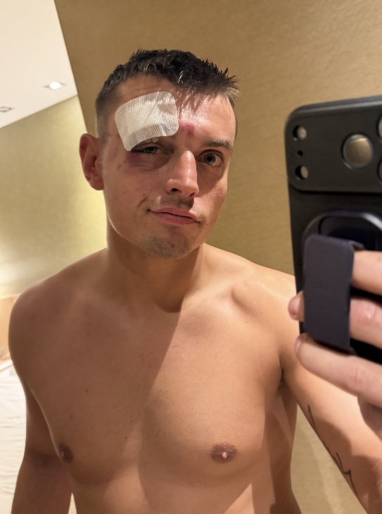 Oscar ”Golden Boy” Ahlin (27-3) mötte på fredagsnatten exil-ukrainaren, numera Lettland, Bohdan Sobol (19-1-1) i Mad Fight Stadium i San Sebastian de Los Reyes om den vakanta WBC/Baltic titeln i lätt tungvikt – och råkade ut för ett oerhört försmädligt nederlag. Matchen stoppades redan i andra ronden, då Oscar togs till läkaren för kontroll av ett djupt cut över vänster ögonbryn varvid kampen bröts och Sobol förklarades segrare på TKO. Första ronden öppnade med en stark offensiv från Sobol, men Oscar hittade sin rytm i slutet av ronden. I rond två startade Sobol åter starkt och i en slagväxling snurrade de två runt och gick m”ned tillsammans, men Oscar gavs en räkning. Vid ”box” anföll Sobol på nytt men Oscar träffade då med en vänsterkrok som skakade honom. Därefter skallade de ihop och blodet flödade ut från Oscars vänstra ögonbryn. Kort efter tog domaren Ahlin till läkaren, som direkt bröt matchen. Egentligen ska en ”accidental headbutt” inom de första 4 ronderna leda till tekniskt oavgjort, men domaren bestämde att cutet uppstått genom slag – vilket det inte var. Därav domslutet TKO, vilket Oscar beskriver nerifrån Madrid, som ”sjukt trist”. Han fördes direkt efter kampen till sjukhus för att bli sydd – se bilder – och sammanfattar för oss sin titelkamp med orden ” Så sjukt snöpligt”!