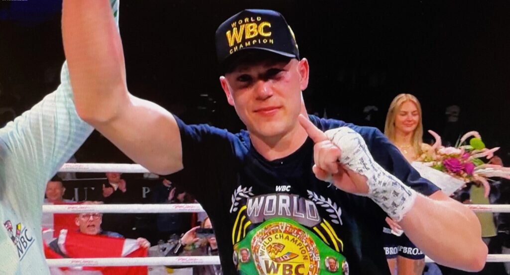 I själva huvudmatchen, där Koldings & Danmarks egen boxarkung Jacob Bank (19-0/11 KO) mötte Namibias Paulinus Ndjolonimu (20-2/18 KO), i vad som till sist blev en WBC/Eliminator – ett VM-kval – i supermellanvikt, knäckte den danska stjärnan successivt sin motståndare med en konstant press i en match som dock länge var högst spännande och jämn. En minut in på femte ronden rammade Bank sin man hårt i kroppen och följde sedan upp med en stenhård press framåt där ytterligare slag drev Paulinus in i ena ringhörnan, där han sedan gick ner på knä och räknades ut, ”ten and out!”, av ringdomare Ali Oubaali på tiden 1:19, KO 5..! Därmed är, åtminstone i teorin, VM nästa anhalt för Jakob Bank!
