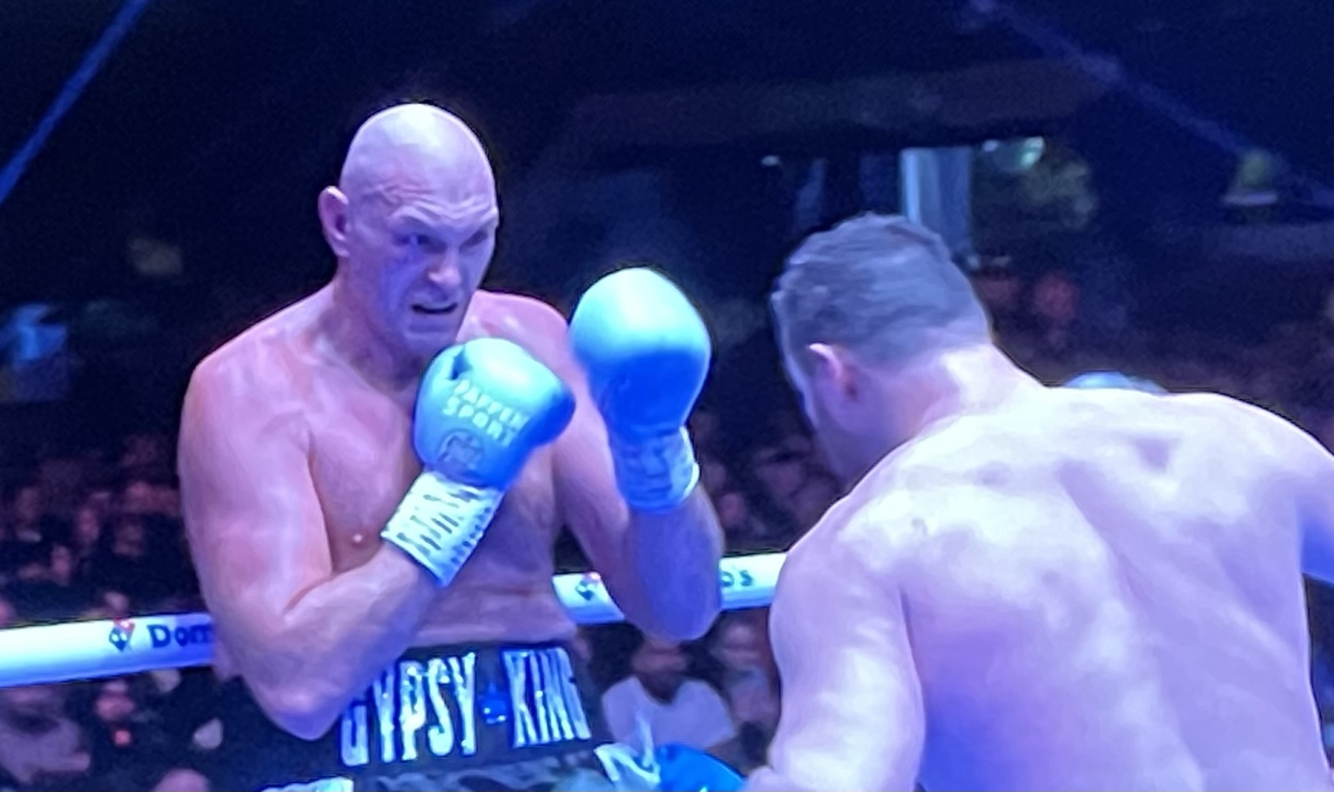 De båda tungviktsbestarna, vardera över 120 kg tunga, äntrade ringen lysande av självförtroende men gav mycket annorlunda intryck; Makhmudov massiv och kompakt med vältränad fysionomi i den 2 meter långa kroppen, mot den 206 cm långbente britten som trots inrapporterad mängdträning och långa förberedelser visade upp ordentliga ’bilringar’ runt midjan. Men ’ändå skulle det i det långa loppet av en krävande, fysiskt brutal kamp – men ingalunda vacker, med mycket låsningar och en del ’bök’ – visa sig vara Tyson Fury som hade klart bäst kondition! Det började dock tufft för ”Gypsy King”, då Makhmudov klart insåg att hans stora chans låg i att överrumpla ex-mästaren så snart som möjligt. Han gick till våldsam attack i första ronden och hade Tyson i bryderi flera gånger, till och med träffad, så att han kort knäade, och ”Lejonet” tog rätt klart första ronden. I andra började Fury kunna skaka av uppenbar ringrost, hittade sin jabb, och började förvilla ex-ryssen med att skifta mellan ortodox och south paw, något som han sedan gjorde titt och tätt genom kampen. Han gjorde andra ronden jämn, men det fanns fortsatt en del bekymrade miner runt brittens hörna. Från tredje ronden hittade den tidigare tvåfaldige VM-kungen både rytm och metod, och även om han fortsatt pressades av sin aggressive motståndare, hittade han nu blottor och tid och utrymme att emellanåt piska upp honom .. och från denna rond vann han hela vägen framöver. Han drev emellanåt in rätt skarpa krokar mellan jabbarna, vare sig det var vänster eller höger ställning han brukade, men framförallt började han drämma dit en utmärkt uppercut gång på gång! Makhmudov kroknade betänkligt efter sjunde ronden, och var momentant illa ute i sekvenser under följande ronder. Furys hörna, ledd av Sugar Hill Stewart, började inför ”championhip distance” uppmana sin man ”att göra slut på det” .. och Tyson försökte nog, men Arslanbek ”Lejonet” gjorde sin starkaste insats på flera år och kämpade med allt han hade in i slutet. Skakad tog han sig igenom både elfte och tolfte ronderna, och föll vid full tid i Tyson Furys armar i en stor kram av förmodad både lättnad och trötthet. Fury var fortsatt mycket aktiv i hela avslutningen och skickade omedelbart på slutsignalen armarna i luften. Domarna kom upp med siffrorna 120-108 hos två av dem (hur nu i herrans namn båda dessa herrar kunde missa att Fury tog stryk i rond 1) och 119-109 till Fury. ”The Gypsy King is back again”, gick vrålet kring ringen.