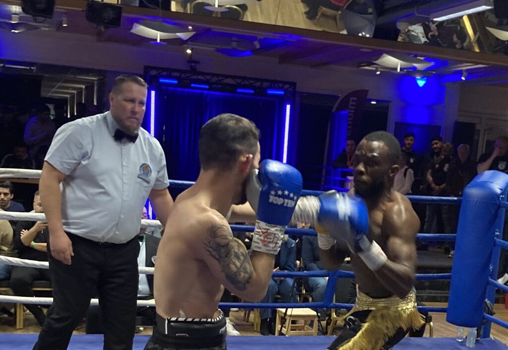 I nästa proffsmatch dammade Kamkian ”DJ” Djiminger (2-0) och Erik Tamas Orsos (2-5) från Budapest, Ungern ihop i en ruffig men intensiv och underhållande 4-rondare i mellanvikt, som klart dominerades av ”DJ” fram till en enhällig poängseger (40-35×3).