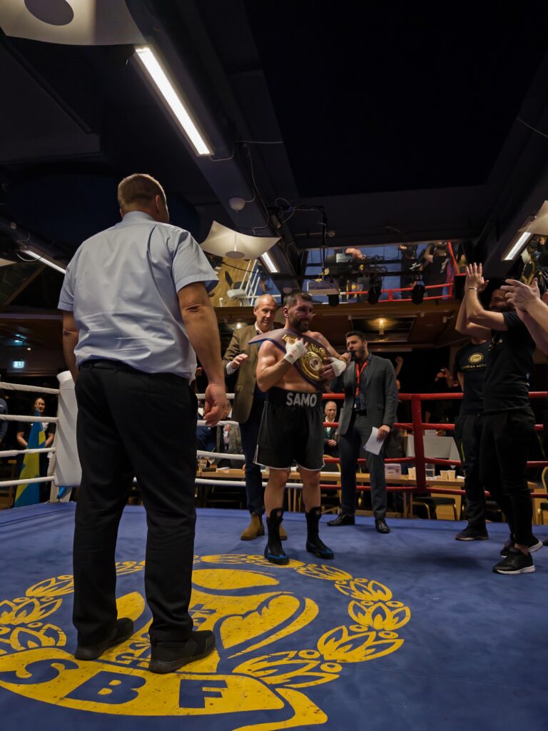 Estländaren vann första och tredje ronderna och gjorde andra jämn, varför det tog Samo fjärde, femte och sjätte ronderna att jämna ut och ta över…och allt starkare forcerade han sedan i sjunde och åttonde ronderna till en trots allt hyggligt klar seger, medan publiken unisont skanderade ”Samo, Samo, Samo” så att det dånade i den lilla utmärkt fina boxningsarenan. Till sist skrevs domarsiffrorna till 78-74, 79-73, 77-75 enhälligt till Jangirov. Och under ett vilt jubel kröntes han ”still Baltic Boxing Union Champion”! Med bälte och allt, och sedan hyllad av en mängd människor i ringen! Det var helt klart en hett efterlängtad revansch, och han tackade varmt både familj, vänner, sekonder och publik i ett fint tal från ringen. Riktigt vackert! 2