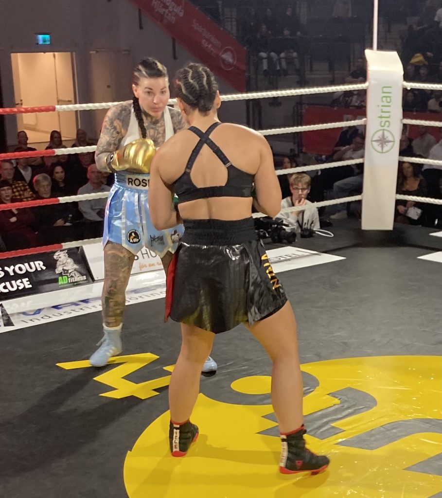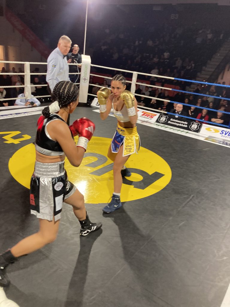 En överlycklig Linn Sandström sjönk till golvet i närmast jubelkramp vid domslutet, och kröntes sedan överlycklig till WBA mästarinna! Hon är därmed kvalificerad för ett skott på den verkliga VM-titeln. Då hade tidigare under kvällen debuterande Therese Rosell gått oavgjort över fyra ronder i en underhållande match mot tuffa och starka georgiskan Nino Rebia (38-38 x 2, 38-39).