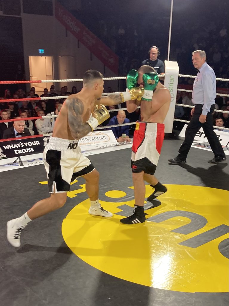 Återvändande Lucy Wildheart (11-3) vann sin comeback över tuffa bulgariskan Milena Koleva (10-18-1), men först efter att i ruffig, tät kamp ha vänt underläge till övertag; hon tog hem det hela (59-55, 58-56 x 2); match i lättvikt över 6 x 2.John ”Kiruna” Salomonsson (5-0) inledde sin match i cruiservikt mot rutinerade muy thai-fightern Bernard Plavec (1-3 som proffs) mycket bra och slog bra nära ut honom, men tog sedan nästan slut och hade det kämpigt på slutet, men gjorde nog för en knapp men klar vinst (39-37 x 3). Och i avslutande förmatch kom hemmasonen Joel Larsson (nu 4-1-1) strax i underläge i sitt maffiga tungviktsmöte mot den store dansken Thorbjörn Boudigaard (9-2), och med knäckt revben och i svårt bryderi bröts hans insats av ringdomare Åke Johansson som tvangs stoppa, TKO 3, på tiden 31 sekunder av ronden! Det var en riktigt häftig proffsgala inför en stor och entusiastisk publik på över 900 personer – en Armand Krajnc-show av bästa märke!