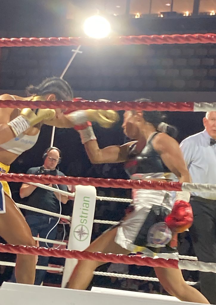 Boxningarna i Kristianstad Arena på lördag kväll och natt avslutades med en rivig och snabbfotad flugviktkamp om WBA/Gold-titeln mellan Linn Sandström (11-4-3) och förra VM-drottningen Maribel Ramirez (15-13-4), som utmynnade i ett enormt svenskt jubel efter full distans över 10 ronder! Då hade under första halvan av kampen den från start häftiga ’styrkemätningen’ hämmats en del av frekventa svenska låsningar, vilka följdes av upprepade tillsägelser av den svenska ringdomaren Mikael Hook, som lät Linn komma undan utan varning inklusive en sista stram åthutning in i femte ronden.
