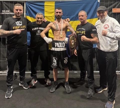I Fight Life/Steel Ring/LBM proffsgala i Oulu (Uleåborg) i Finland på lördagskvällen erövrade Jönköpings boxningsstolthet Paolo Magui (13-0) den Baltiska (BBU) titeln i lättvikt över gedigna sydafrikanska proffset David Rajuili (13-18-19) på poäng över 10 ronder, men dock blott via ett delat domslut. Det blev en i vissa stycken svårbedömd kamp mellan Paolos skickliga distansboxning och Rajuilis tuffa press i infighting, och domarna delade sig anmärkningsvärt i uppfattning efter genomförd batalj – två domare hade en hygglig eller t o m klar svensk seger med siffrorna 96-94 och 98-92 medan den tredje domaren hade radikalt motsatta 97-93 för Rajuili. ”Vi är mer än nöjda med Paolos insats, men det var en riktigt jobbig match”, sade Maguis coach Kamran Kabinejad efteråt, ”Paolo vann helt klart och dominerade kampen bak sina fina raka stötar. Skönt att det gick vägen, och riktigt bra jobbat av Paolo, som ju faktiskt tog ett stort kliv från sex till tio ronder här! Vi är stolta! ”I förmatch vann Patricia Berghult (19-2) klart över nya finskan Tiia Rantakylä (2-1) på poäng i lätt weltervikt över 6×2 ronder. Patricia redde fint ut finskans tidiga press och hade henne sedan groggy flera gånger, men Tiia klarade sig tiden ut. Poängen var klara 60-54×3 till Patricia. Vår svensklicensierade isländska bjässe Kolbeinn ”Kolli” Kristinsson (19-0/13 KO) tog ännu en övertygande seger, då han i galans semi slog ut sydamerikanen Pedro Martinez (13-5/7 KO) redan i andra ronden. Detta var ”Kollis” nionde raka seger på KO/TKO!