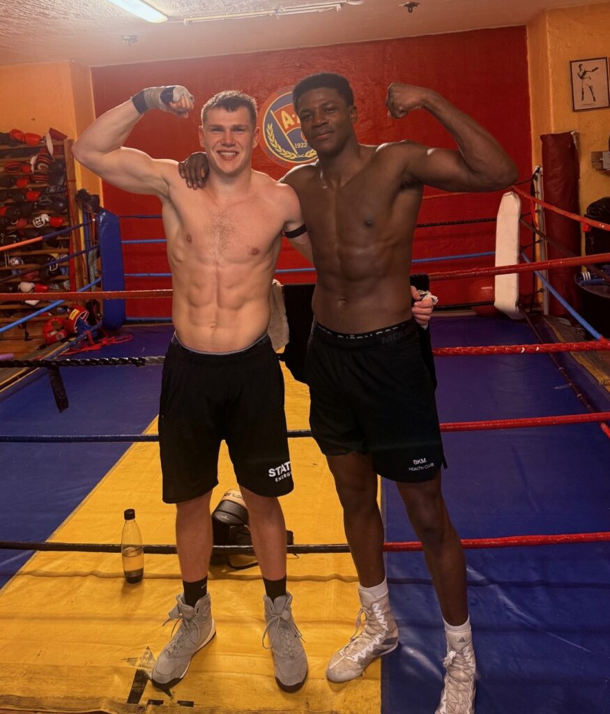 Costas Nanga och danska stjärnan Jacob Bank har legat på sparringläger i Stockholm under påskveckan, med framförallt tre dagar högkvalitativ sparring mot varann i dels IF Linnéas och dels AIF:s träningslokaler. Totalt körde de 28 tuffa sparringronder, fram tills de tog påskledigt från lördagen. Vi har fått ett foto från avslutat jobb – på två nöjda proffs som fick ett bra jobb gjort. De är ju numera stallkompisar hos Primetime, och ska efter påsk plocka upp fortsatt samarbete på Banks hemmaplan i Kolding.