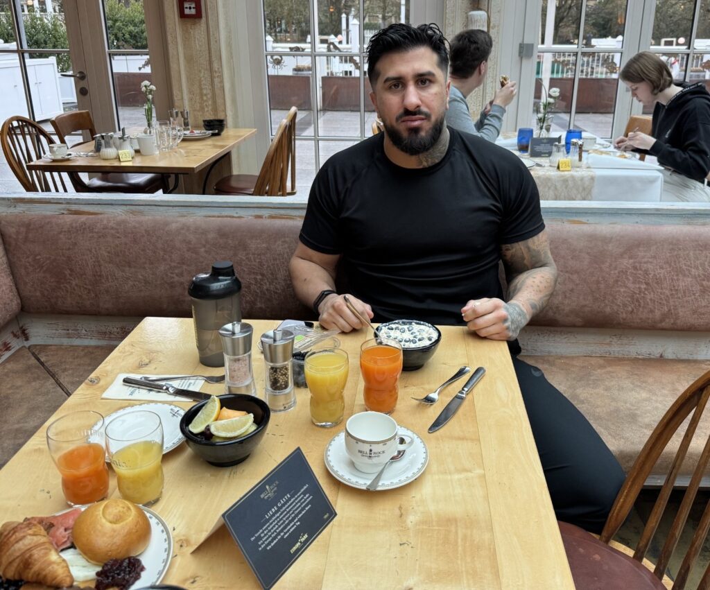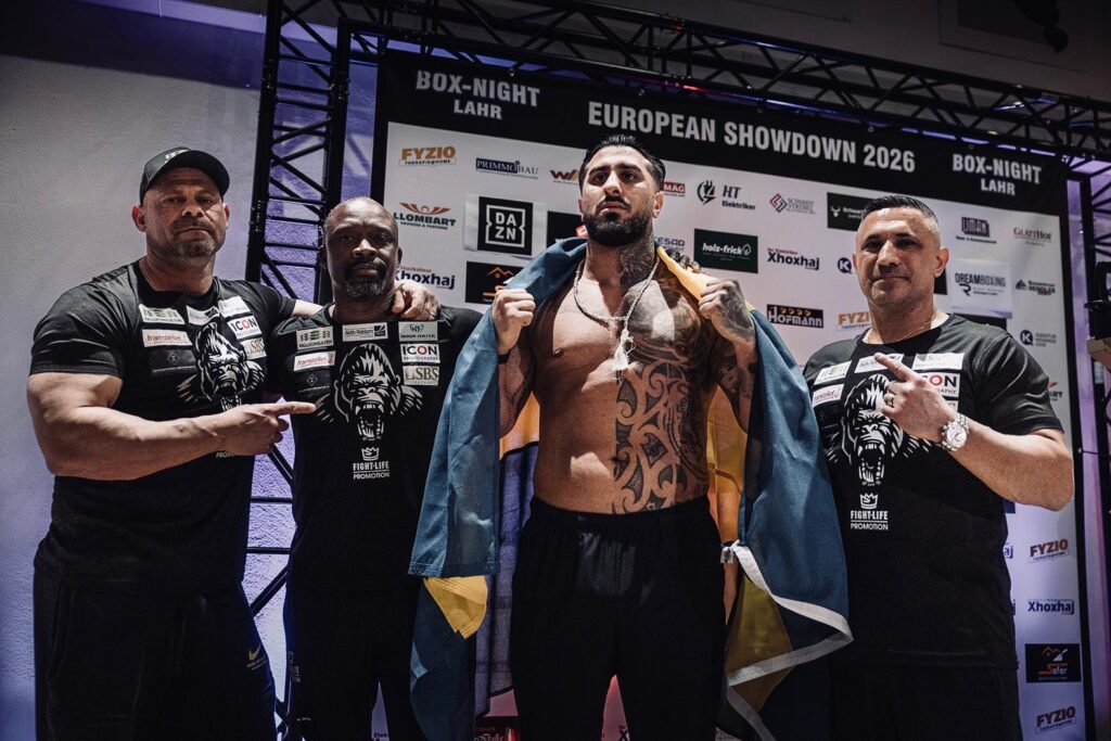 Pezhman Seifkhani laddar in en stadig frukost matchdags morgon i hotellet i Lahr – se foto från Fight Life-gänget – som start på denna dag, där målet är att vid pass kl 22 ikväll gå efter Europatiteln i tungvikt mot Labinot Xhoxhaj i Hallensportzentrum. Resan fram till fighttime har varit jobbig och lång, men nu är han där – och rapporterna hem från honom och hans team – gänget ses på den andra bilden från Pavel Koubek, fr v Yaniv Hallmen, Tonton Semakala, EM-utmanaren själv insvept i svenska flaggan och KamranKabinejad – har varit positiva. ”Allt är bra, vi är redo, nu går vi efter EM-bältet!” Matchen utkämpas sist på det 10 matcher stora EM-programmet, då EM-kampen är den givna höjdpunkten – inlagd således vid kl 22 – i Hallensportzentrum; detta är i en ganska liten hall för en så stor fight, där promotor SezerUelker säger att det blir utsålt, vilket innebär drygt 2000 åskådare, som betalat allt från billigare €59 till dyrare €173 till betydligt dyrare VIP-paket för att bänka sig runt ringen. Matchen och galan, med start kl 18.30, sänds i bra nära sin helhet över världsvida DAZN. Det kommer ett gäng främst Örebroare ner till Lahr idag, vilka högljutt kommer att bära Pezhman fram under fighten från ringside, men den stora svenska publiken torde följa kampen via TV/datorer via DAZN sändning. Bookmakers odds inför kamp ligger klart i Labinot Xhoxhajsfavör, men ett antal experter har gått ut och varnat för att Pezhman Seifkhani kan skrälla och vinna i natt.