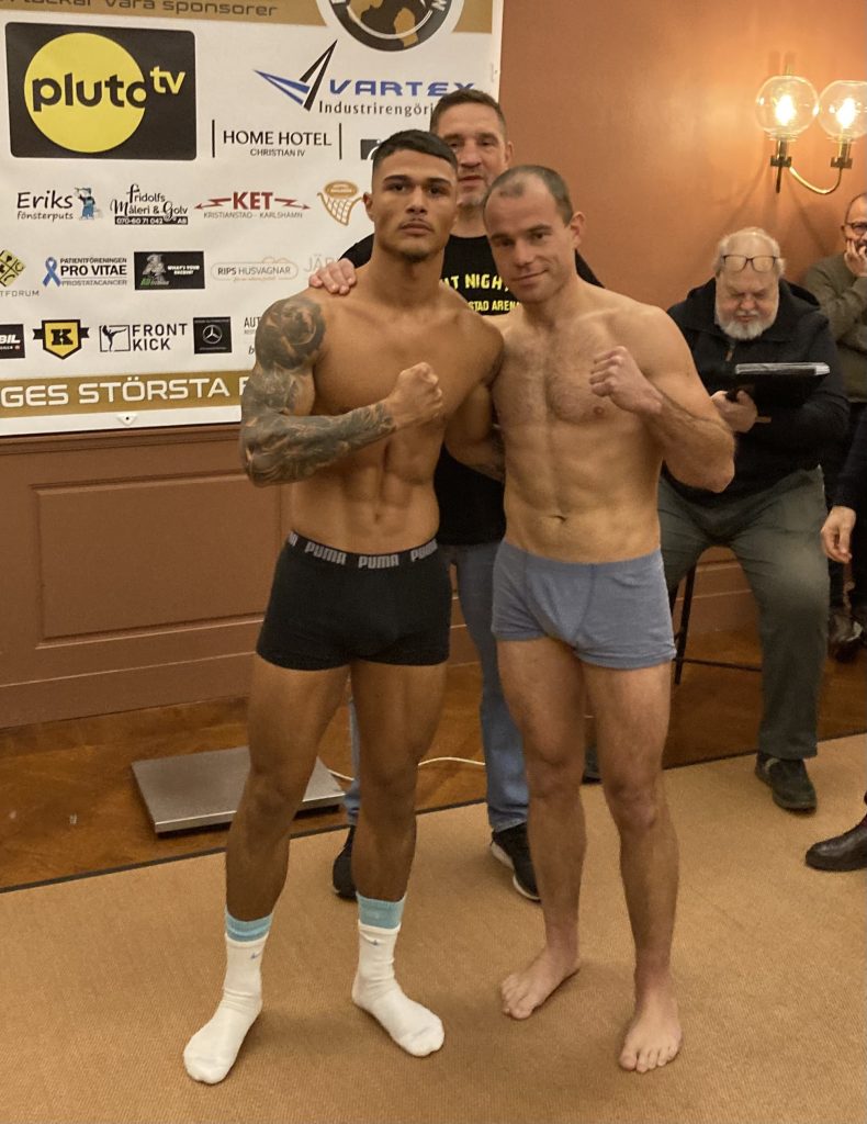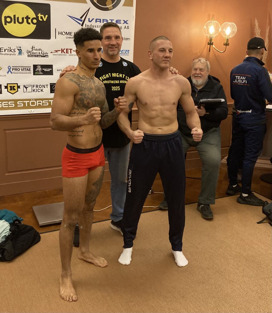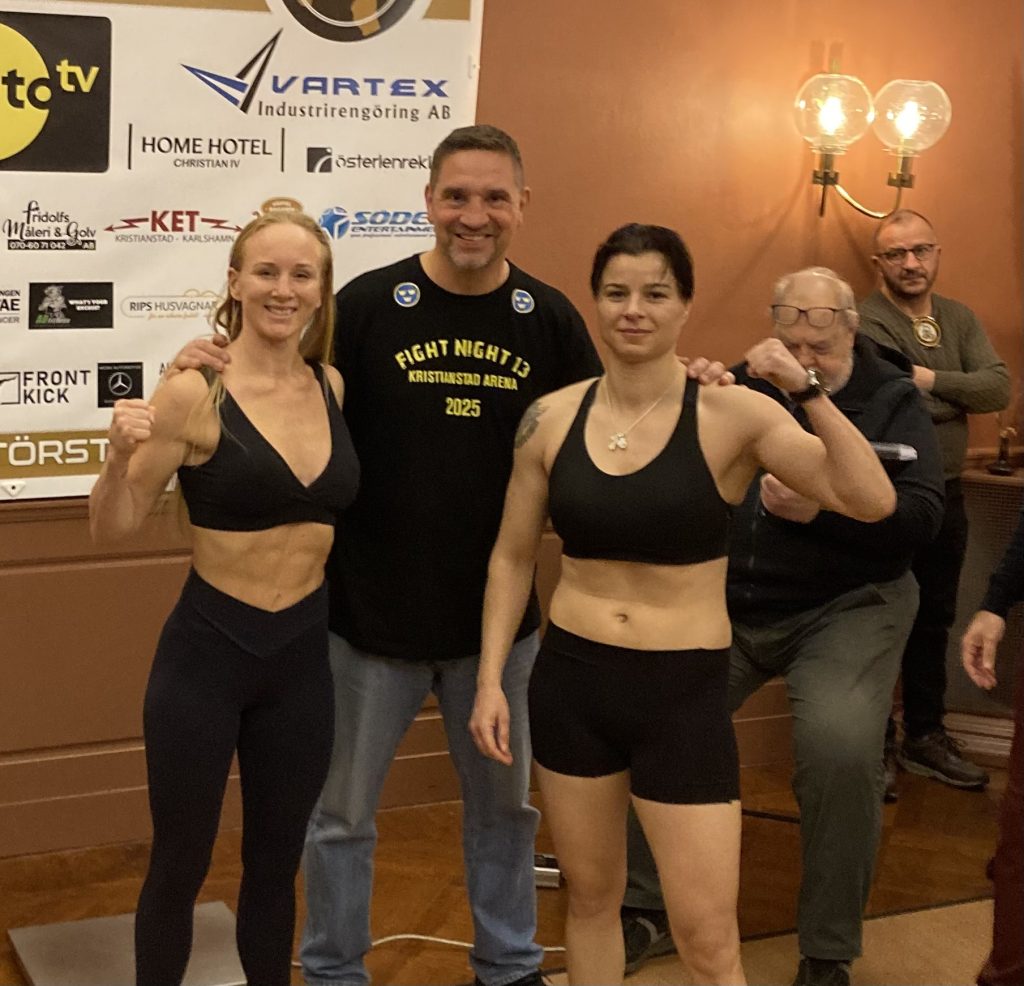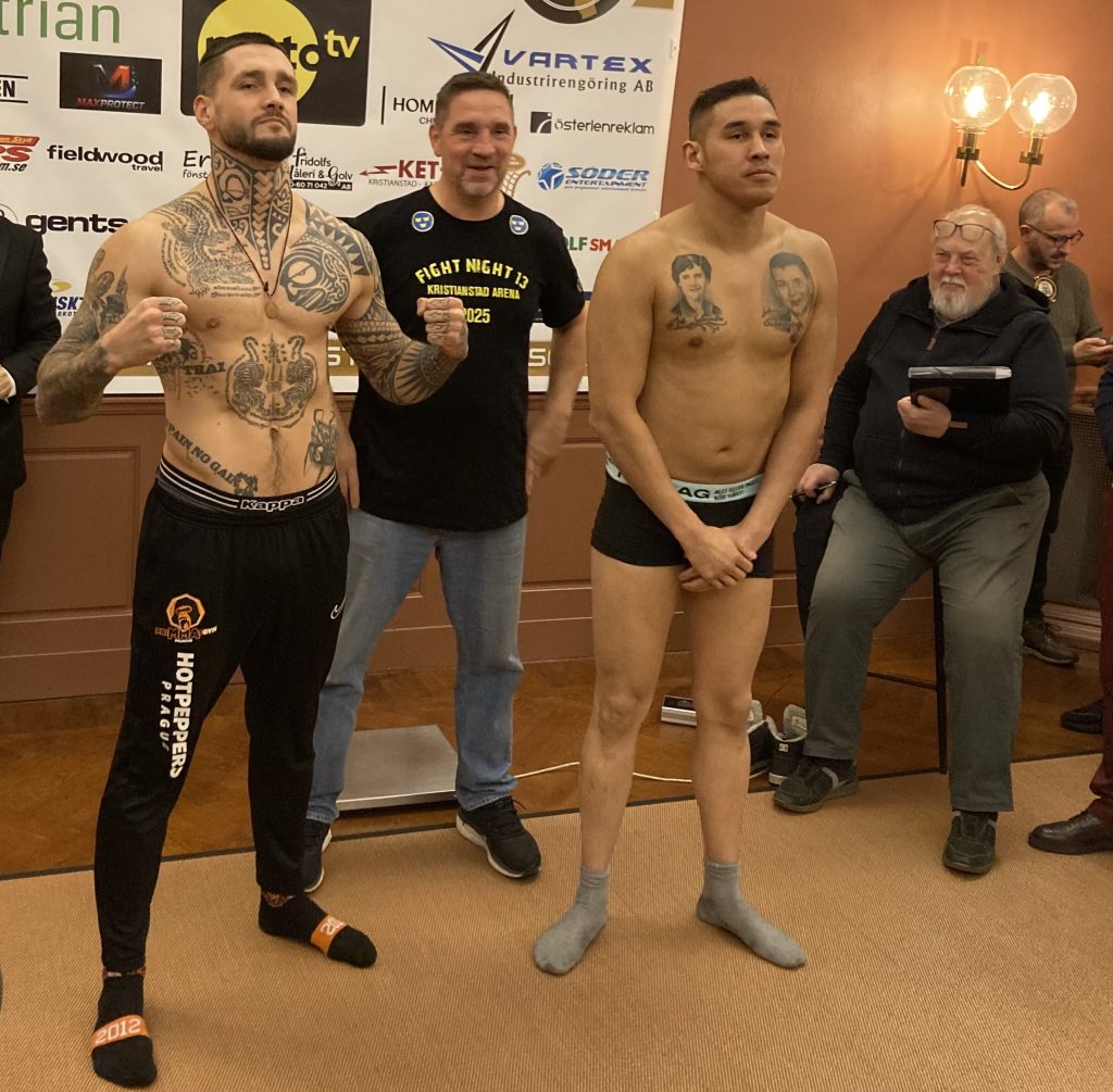 Vid fredagens invägning i Hotel Home Christian IV I Kristianstad vägde samtliga tjugo proffsboxare parvis i match efter match in utan problem, varpå de läkarundersöktes och befanns fit for fight – varmed allt nu är ”go” inför lördagens boxningar i Kristianstads arena. Den största skillnaden i vikt uppstod i debuterande Therese Rosells kamp mot tre matcher rutinerade Georgien-proffset Nino Revia. Matchen var satt till lätt weltervikt, men Therese kom in lätt, på blott 61 kg, medan den långväga gästen Nino – efter en försenad flygresa i snöoväder- kom in för tung, på 64 kg, men den tuffa göteborgskan godtog detta och accepterade att fightas trots vikthandikapp. I de flesta av de andra matcherna vägde dock det stora flertalet kämpar tämligen jämnt. I huvudmatchen, damernas titeljakt (WBA/Gold-bältet) i flugvikt kom svensk-australiensiska Linn Sandström och förra VM-drottningen Maribel Ramirez upp på vågen med blott två ynka hg skillnad i vikt. De två svepte sig efteråt i Sveriges respektive Mexikos flaggor och utmanade varann inför morgonens uppgörelse. Det blir en vass fight! Promotor Armand Krajnc övervakade hela den tio matcher långa proceduren.